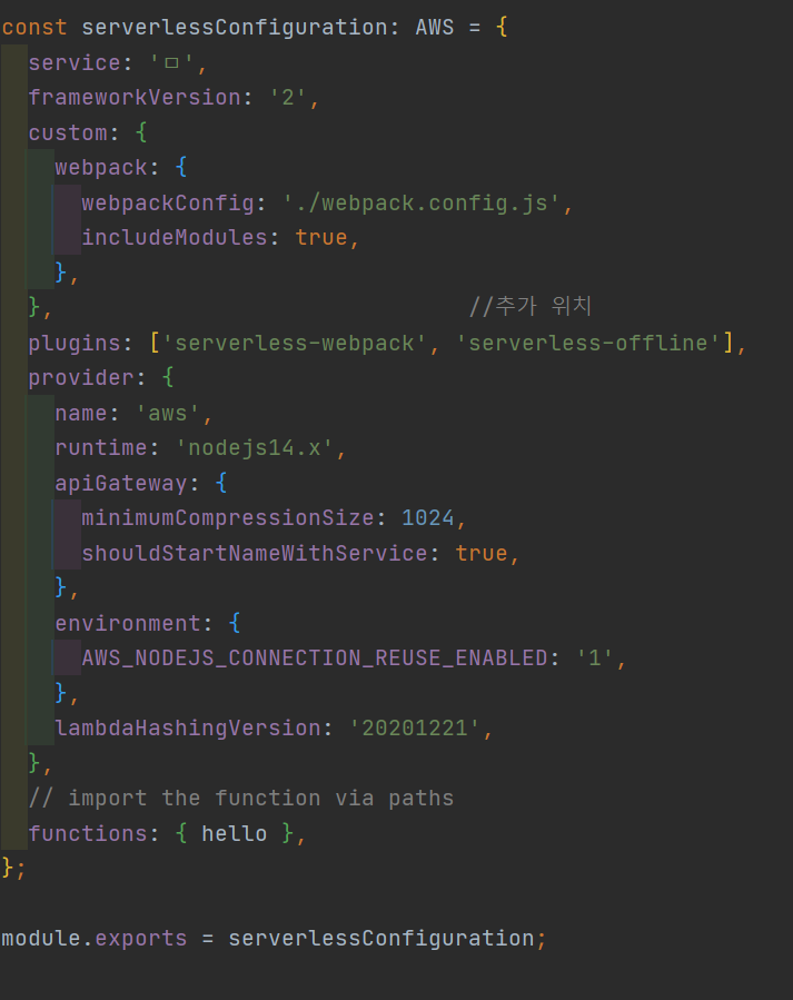 설치 후에는 serverless.ts에 Plugin을 등록해야 합니다.